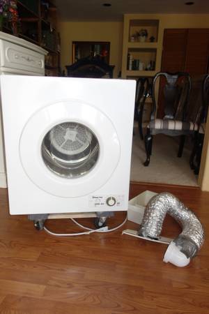 You can mount it on a wall or place it on a countertop to save space. It's equipped with two temperature settings for proper fabric care. This mini / small dryer has an ECO Mode and Sensor Dry Selector for energy efficiency and uses a standard 110 V outlet.