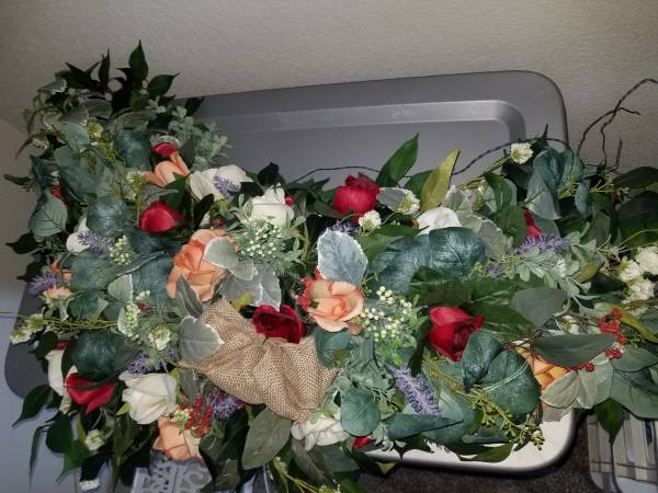 -Artificial flowers for wedding Arch. Arch is NOT included. The flowers have metal wire that you attach to arch/frame for decorating. In great condition.
