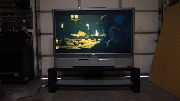 This is a very cool and rare TV. Epson came up with the idea of having a way to view and print your photos without needing a PC. They had two models, this being the largest at 57". It's in perfect working condition and looks like new. I've never tried using the photo printer and i'm sure it would need ink after not being used for so long. The remote works fine as well and comes with batteries. I'm also including a nice A/V cable with it. The stand is sturdy, looks nice with the smoked glass shelf in the base and rotates. There's also a built-in, removeable stand on the top of the TV for DVD players or cable boxes. Just lowered to $150. Trades or partial trades considered.