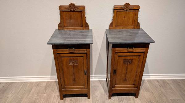 European hardwood construction circa 1900. Marble tops.