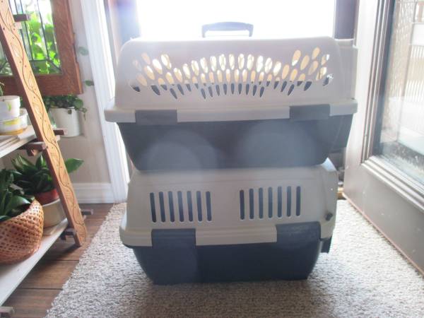 Both for $35. Travel with Pets🐕Two Molded Plastic Pet Carriers. Clean, little used. Brands: Petmate Pet Taxi and Clipper II. Sizes: 🐾One small dog and one medium dog. 🐾 Take both for $35. Our home...