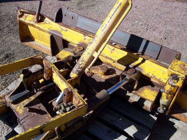 this an old school hydraulic blade and compactor wheel. I am open to offers on it. It has a little more weathering on it since the pictures were taken. It was removed from a John Deere 401B Industrial machine. I have a couple of different Valve bodies that will work on it. It can be mounted on any medium duty tractor/backhoe type machine without too much trouble. As stated I am open to offers on it. My name is Bill at seven one 9fivefiveseven1ninefivefive. Thank you