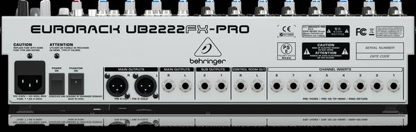 The 22-Input UB2222FX-PRO allows you to effortlessly achieve premium-quality sound – thanks to its 8 studio-grade IMP “Invisible” mic preamps, ultra-musical 3-band EQs with semi-parametric mid band and switchable low-cut filters. Channels 9/10 - 15/16 are dedicated stereo channels with 4-band fixed EQs. Add to this the stereo 24-Bit Multi- FX processor with 100 awesome presets including studio-class reverbs, delays, pitch shifter and various multi-effects – and the UB2222FX-PRO becomes an incredibly-versatile mixer for all your recording sessions and live performances.