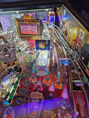 MINTY Houdini pinball machine in great condition and 100% working. 2nd owner. Upgraded power supply..BIG DEAL! Makes the machine (mostly coils) operate properly on a consistent basis...especially...