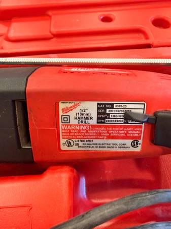 Professional-grade corded hammer drill, made in Germany. New, unused, includes original hard case, side handle, and depth rod. Extremely powerful and durable — ideal for masonry, concrete, and heavy...